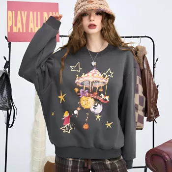 Winter Retro Loose Round Neck Full Print Sweatshirt for Women