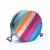 Step out in style with this unique and eye-catching round crossbody bag, designed to elevate any outfit with its bold metallic sheen and vibrant colorful stripes. Crafted from high-quality PU vegan leather, this bag offers a chic, cruelty-free option for fashion-forward individuals. Its striking design, complemented by a sleek chain strap, makes it perfect for those who love to stand out while staying organized and practical.