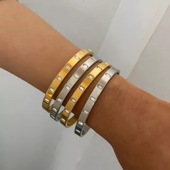 Minimalist 18K Gold Zircon Stainless Steel Bracelet