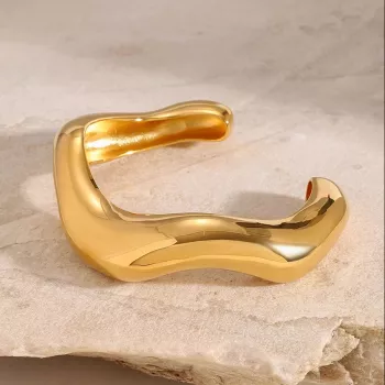 Gold Plated Olive Branch Split Ring Stainless Steel Textured Statement Jewelry