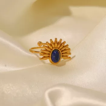 Vintage Lapis Golden Open Ring Stainless Steel Stylish Jewelry for Women